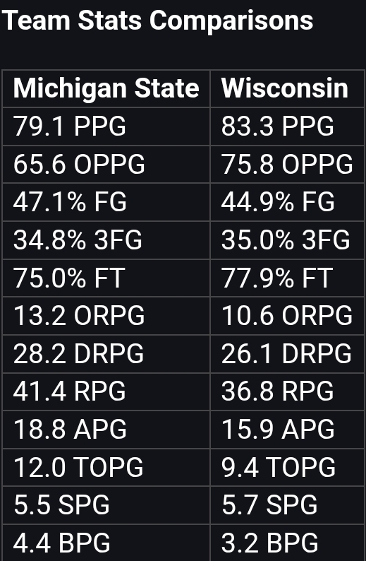 Last time out, Wisconsin defeated Michigan State at the Big Ten tournament 77-74.