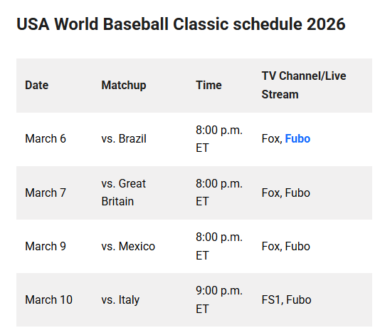 Monday, March 9th, they take on Mexico, also on the same time and channel as the first two games.