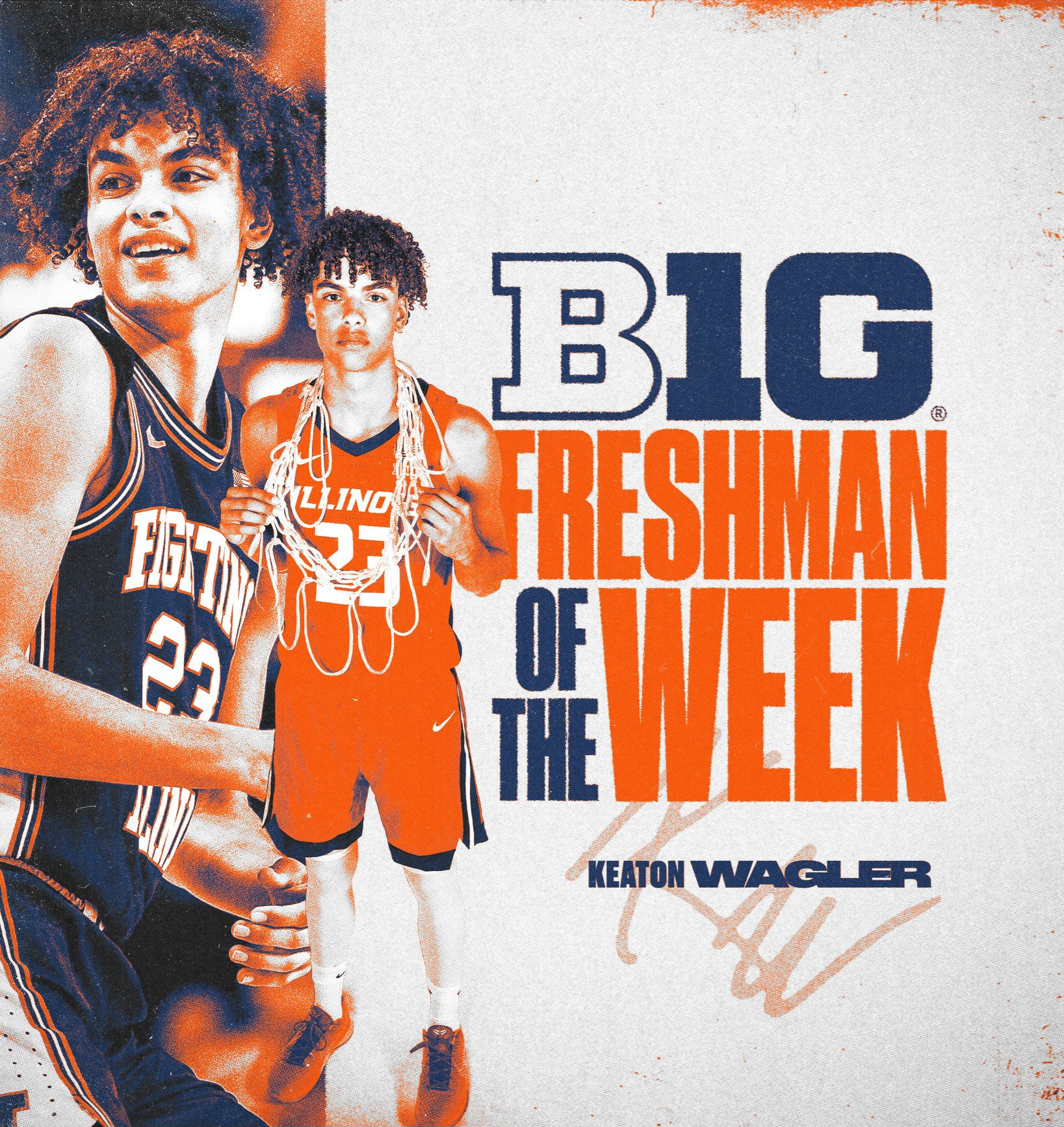 Illinois freshman guard Keaton Wagler earned his fifth Big Ten Freshman of the Week honor on Monday after averaging 25 points, 6.5 assists, 5.0 rebounds, and 2.0 steals in a road win at Nebraska and a home win over Washington.