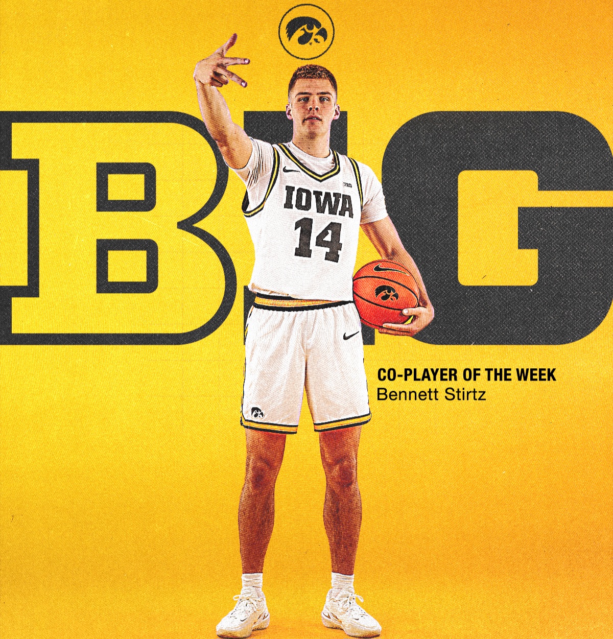 Iowa senior guard Bennett Stirtz and Michigan State redshirt sophomore guard Jeremy Fears Jr. were each named Big Ten Co-Players of the Week on Monday.