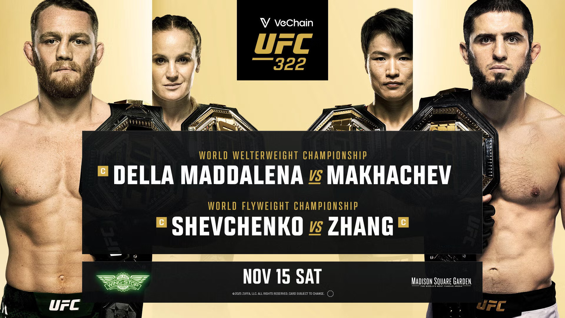 UFC 322 promises a blockbuster lineup headlined by two generational super fights that could redefine divisions. In the main event, welterweight champion Jack Della Maddalena (18-2) puts his belt on the line against former lightweight king Islam Makhachev (27-1), who vacated his 155-pound throne to chase dual-division dreams. Della Maddalena, the undefeated Aussie phenom with eight straight UFC wins, including a brutal finish of Belal Muhammad, faces his sternest test yet against Makhachev. The co-main event is pure fire: women’s flyweight titlist Valentina Shevchenko (24-4) defends against strawweight queen Zhang Weili (26-3), who jumps up to 125 pounds, aiming for history as a two-division champ. Shevchenko’s technical mastery vs Zhang’s raw power in what could be the fight of the year. The main card showcases Leon Edwards vs. Carlos Prates in welterweight action, Sean Brady vs. Michael Morales, and Benoit Saint-Denis vs. Beneil Dariush – a feast of elite talent primed for knockouts and submissions. Lower down, Rodolfo Vieira battles Bo Nickal in a grappling showdown, while the prelims feature rising stars like Malcolm Wellmaker in a short-notice scrap. This 14-fight card isn’t just entertainment; it’s a dope mix fans want, some would say a shift in the UFC landscape, blending champions’ legacies with hungry contenders.