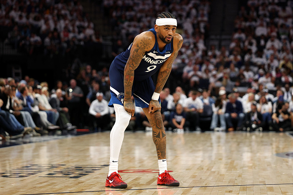 MINNEAPOLIS, MINNESOTA – MAY 08: Nickeil Alexander-Walker #9 of the Minnesota Timberwolves looks on against the Golden State Warriors in the second quarter of Game Two of the Western Conference Second Round NBA Playoffs at Target Center on May 08, 2025 in Minneapolis, Minnesota. The Timberwolves defeated the Warriors 117-93 to tie the series 1-1. NOTE TO USER: User expressly acknowledges and agrees that, by downloading and or using this photograph, User is consenting to the terms and conditions of the Getty Images License Agreement. (Photo by David Berding/Getty Images)